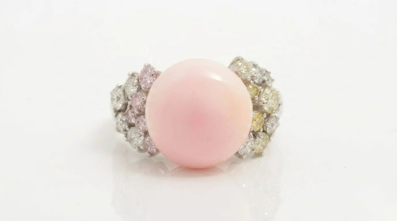 真珠のイメージが強いミキモトですが、ファイアオパールや色石を使用した見事なハイジュエリーも数多く存在します。こうした非真珠系のアイテムの中には、貝のマークではなく、シンプルに「M」の文字のみを独自のフォントで打刻しているものがあります。これもミキモトの確かな証の一つです。