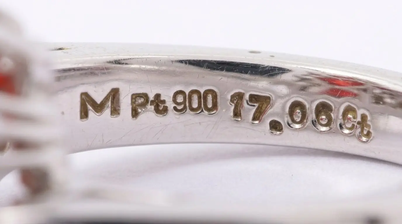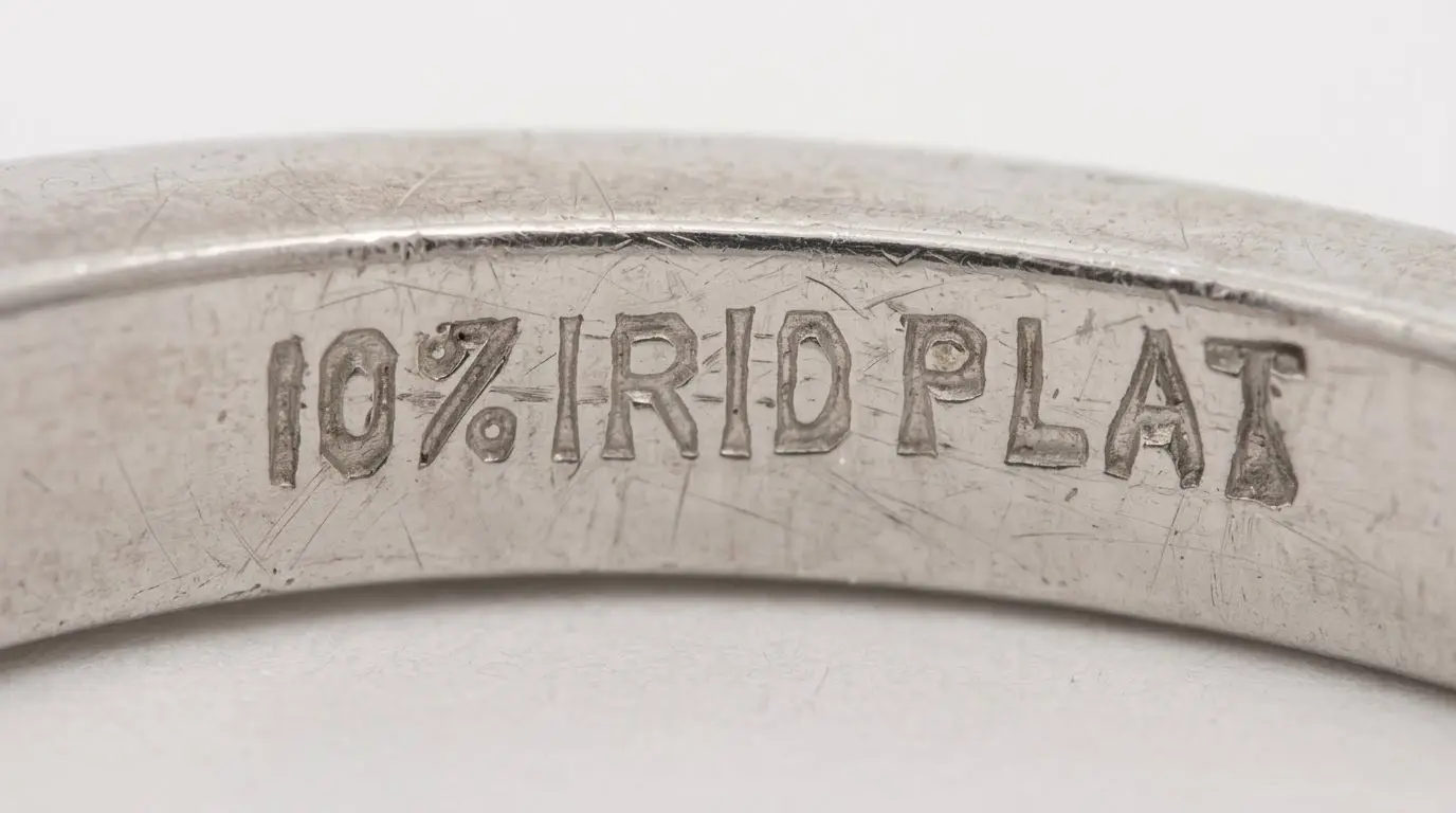 ヴィンテージのミキモト製品(特に戦前〜昭和中期頃のプラチナ製品)には、「IRID PLAT」と打刻されていることがあります。これは「Iridium Platinum(イリジウム・プラチナ)」の略で、プラチナに強度を持たせるためにイリジウムを割金として配合していることを意味します。この刻印があるお品物は、歴史的な価値を持つ希少なヴィンテージジュエリーとして重宝されます。
