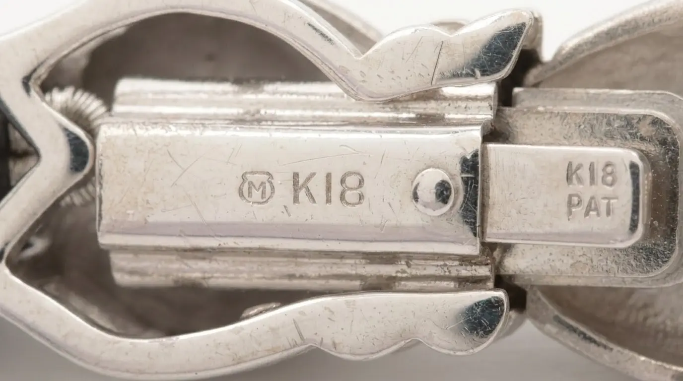 古いミキモトのジュエリーの留め具などに見られる「PAT」という刻印は「Patent(パテント)」の略で特許という意味になります。ミキモトが独自に開発し、特許を取得したクラスプ(留め具)の機構であることを示しており、アンティークやヴィンテージの価値を紐解く重要な手がかりとなります。