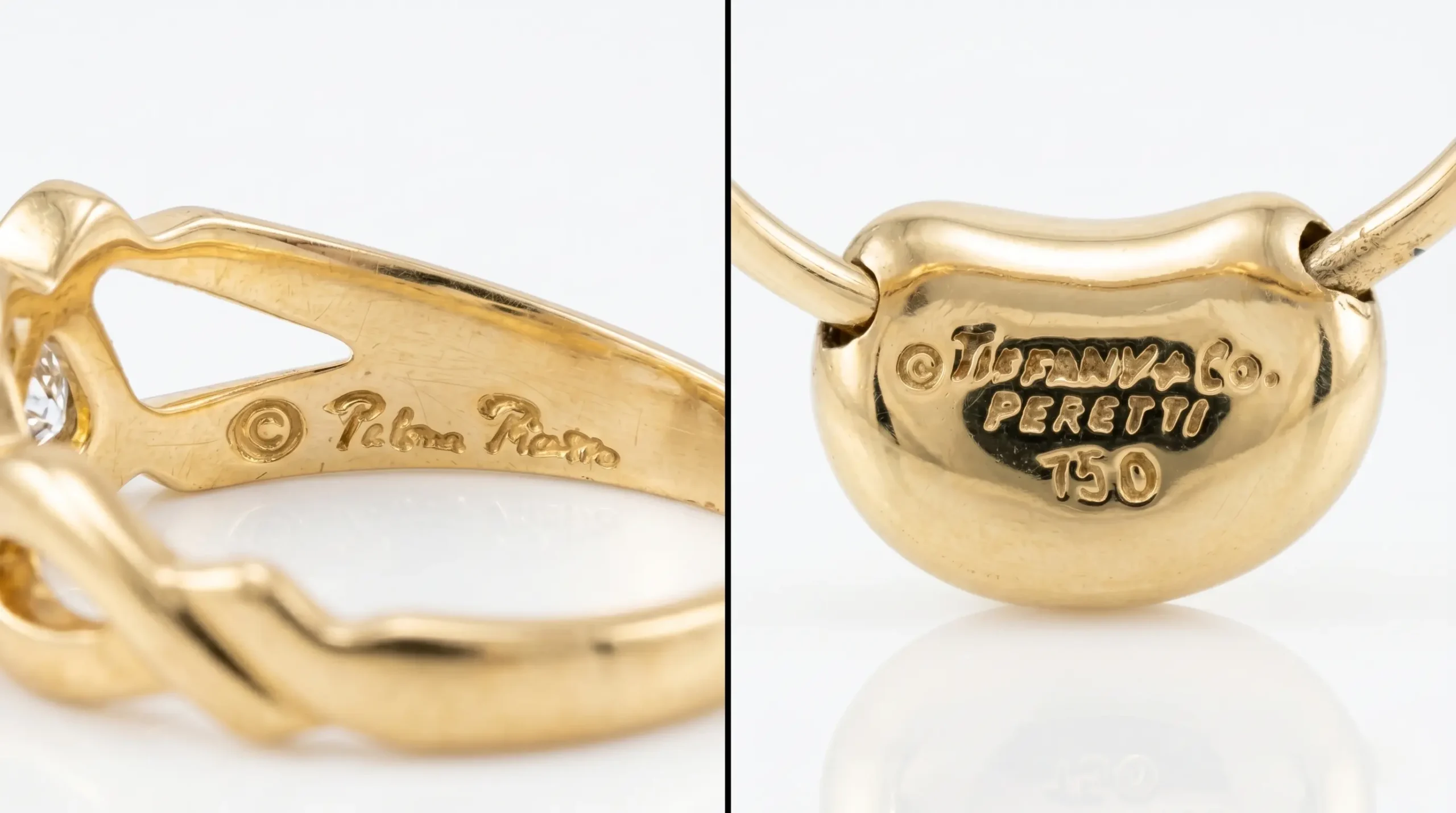お品物の真贋や製造年代を特定するため、アイテムに打刻された「TIFFANY & Co.」のロゴや、素材を示す「925」「750」などのホールマークを確認します。また、エルサ・ペレッティやパロマ・ピカソといった著名デザイナーのコレクションには固有のシグネチャー(署名)刻印があり、これらの深さや整合性も、正確な査定を行うための重要なファクトとなります。