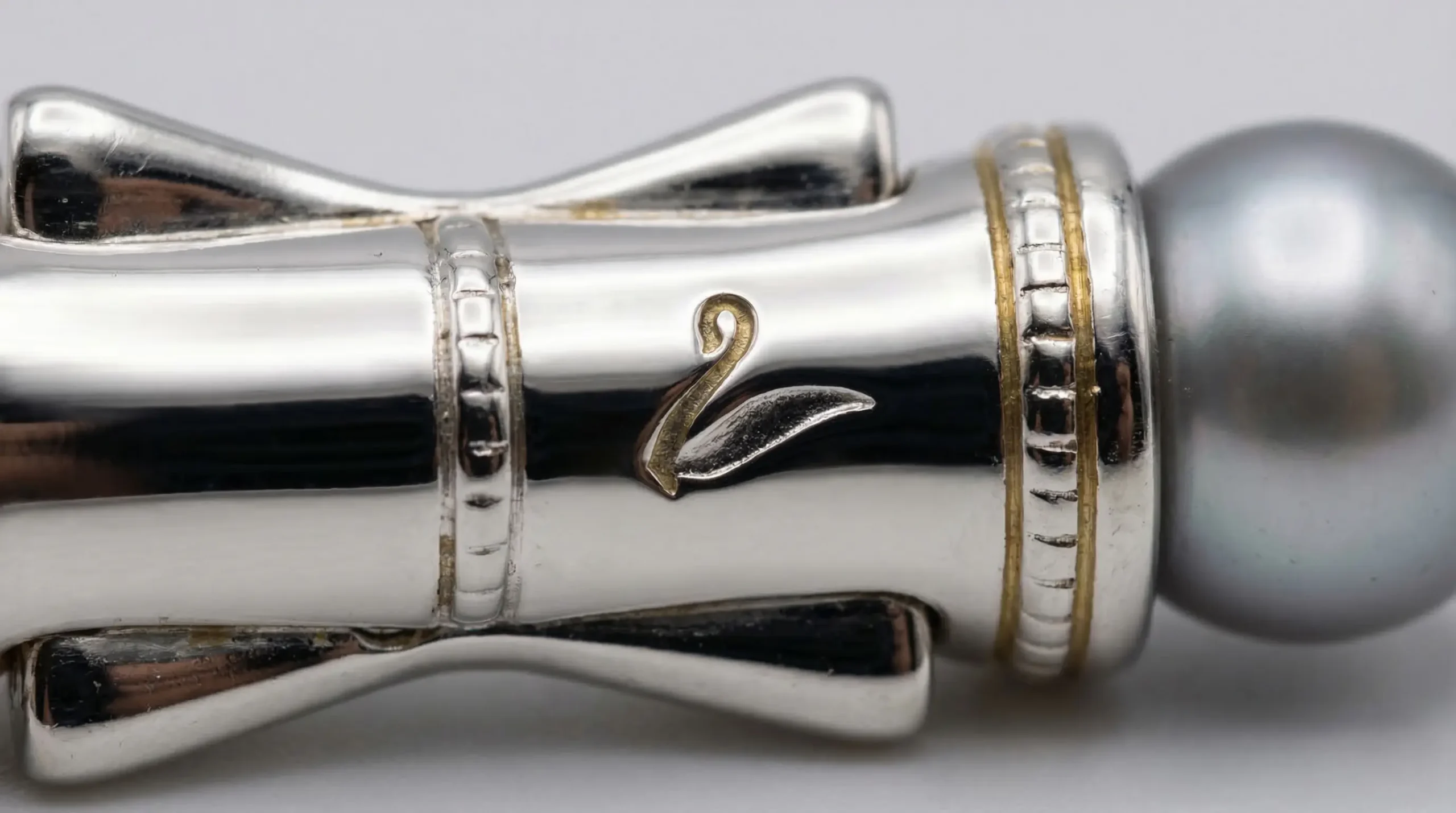 プロの視点 創業初期に近い古いお品物や、特定の記念モデルに見られます。真珠へのこだわりを強く打ち出していた時代の証拠です。
