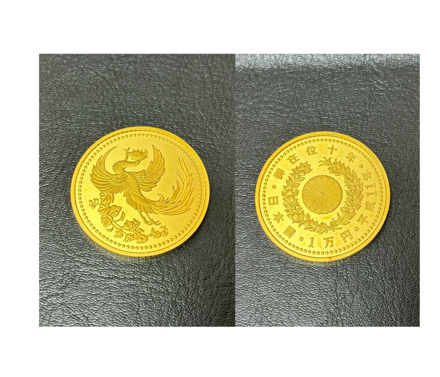 天皇陛下御即位から10年周年を記念して、日本造幣局より1999年(平成11年)に発行された記念貨幣のひとつが、天皇陛下御在位10年記念金貨です。
