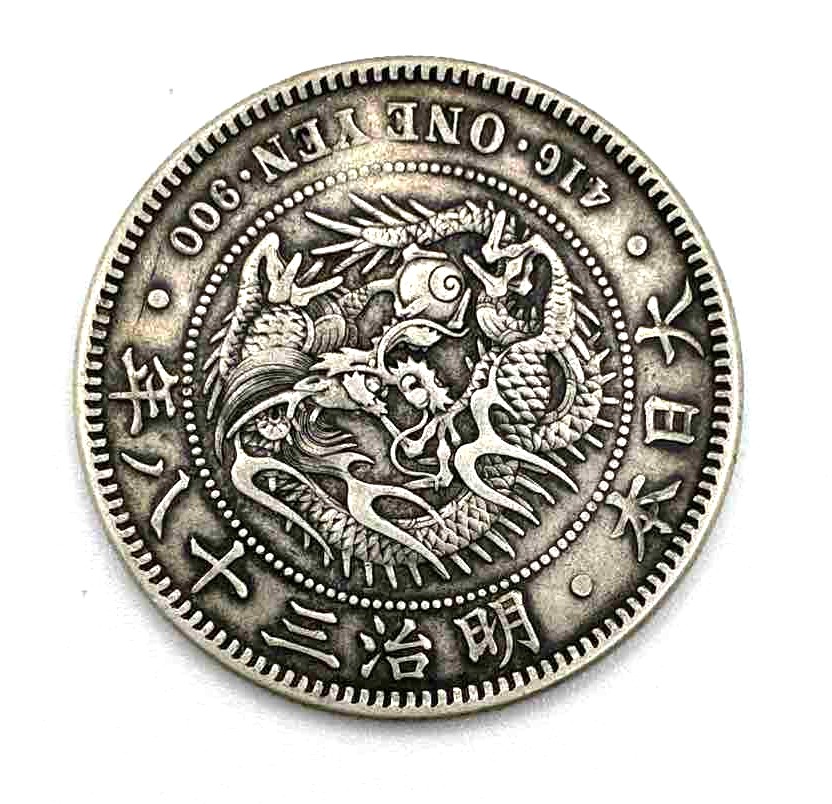 明治3年(旧一圓銀貨):デザインが後のものと異なり、非常に希少。状態が良ければ数万円になることも。