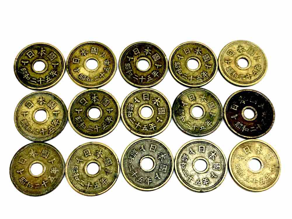 数ある5円玉の中で、楷書体で刻まれた昭和25年発行のものは発行枚数が少ないため、未使用品ならば400~3000円の値で取引されています。