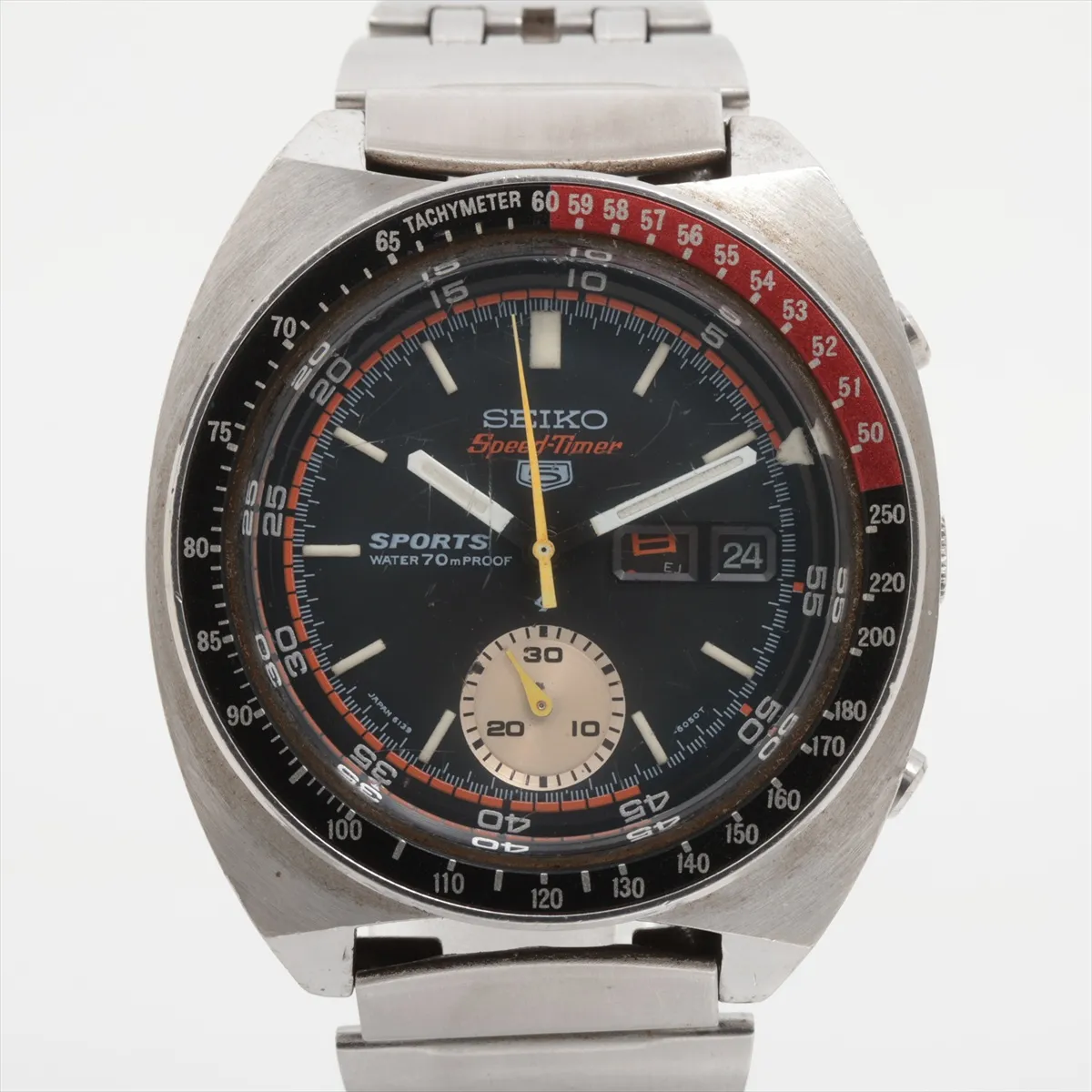 1969年、セイコーは6139(5スポーツ スピードタイマー)を発売しました。これは世界初の自動巻きクロノグラフの一つとされる、時計史に残る革命的なモデルです。