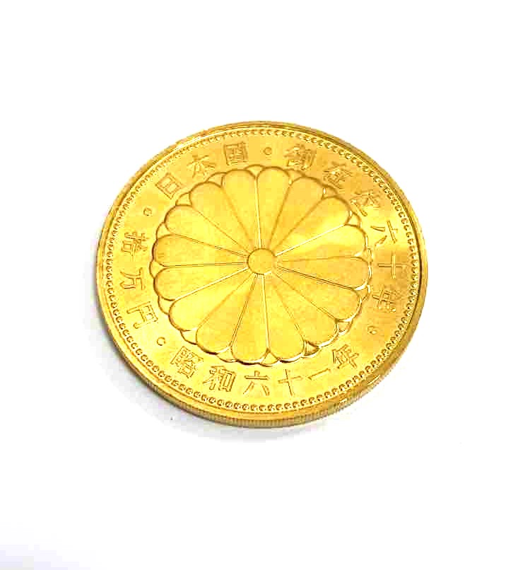 昭和61年(1986年)および昭和62年(1987年)に、昭和天皇の在位60年を記念して発行された、日本初の記念金貨です。