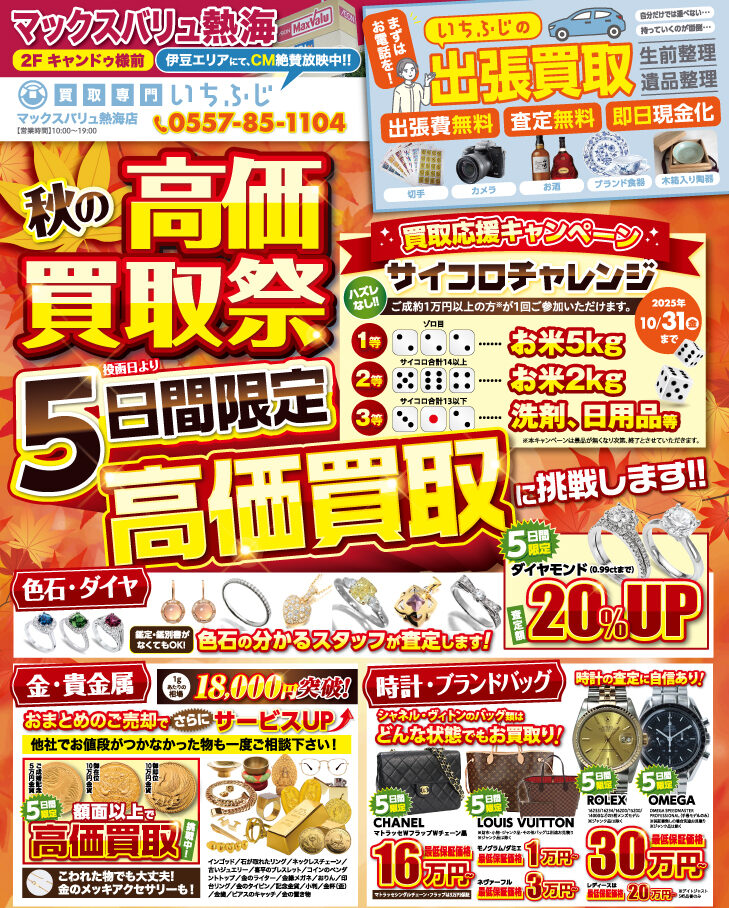 • 熱海で貴金属買取なら 買取専門いちふじマックスバリュ熱海店 へ