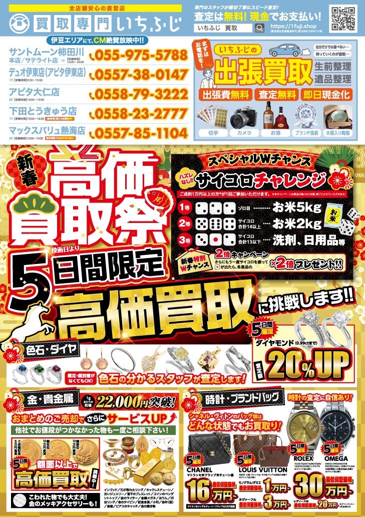 あけましておめでとうございます!1月はサイコロチャレンジがパワーアップ!? 下田市 河津町 松崎町 南伊豆町 東伊豆町 賀茂郡の買取なら「いちふじ」へ!