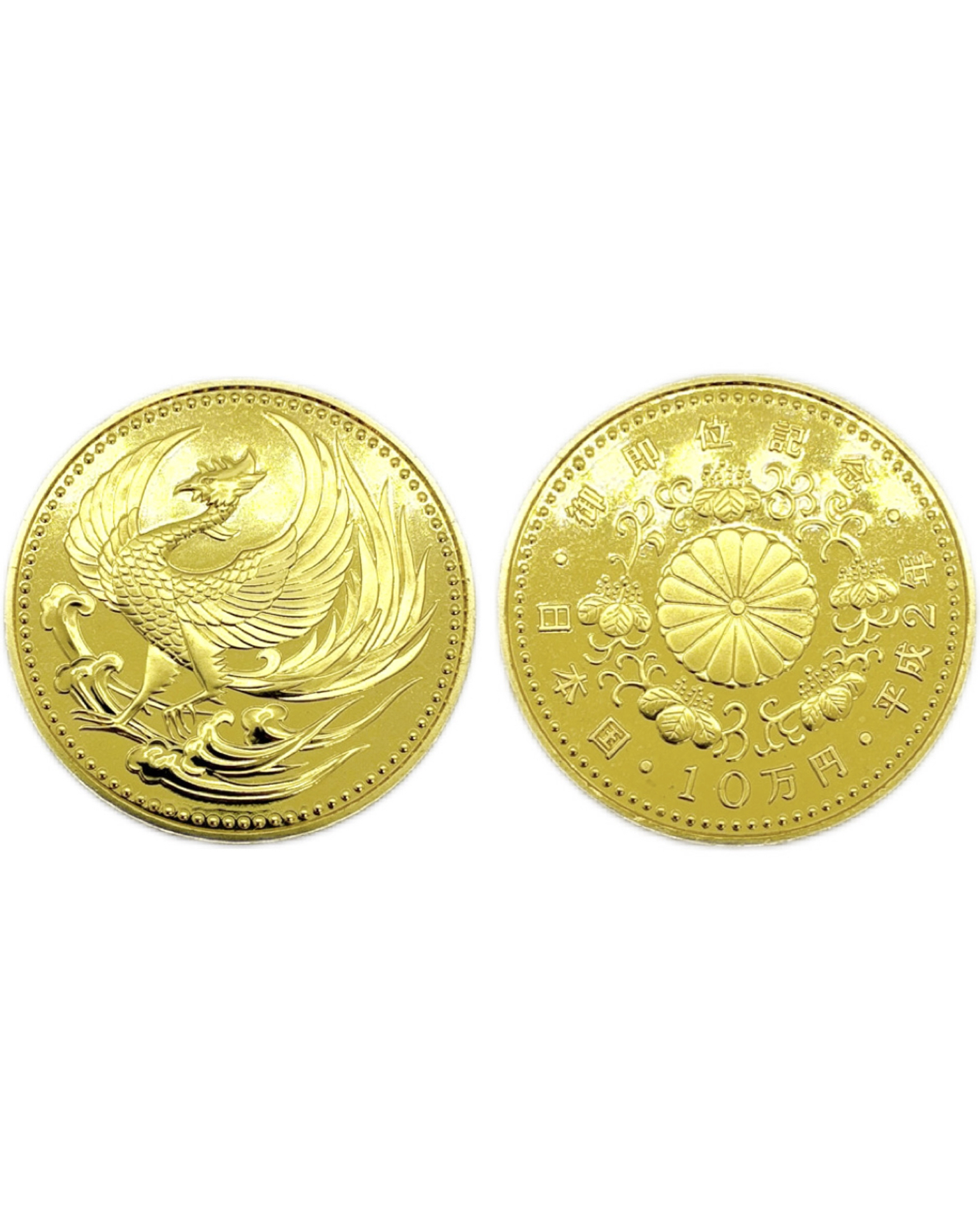 平成という新しい時代の始まりを祝して発行された、ずっしりとした重みが特徴の金貨です。