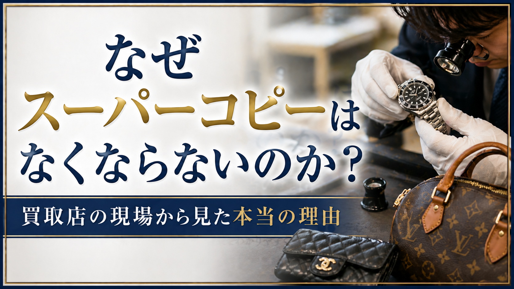 このコラムでは、愛知県新城市でブランド買取・時計買取・バッグ査定・貴金属査定を行う買取専門店の現場スタッフとして、「なぜスーパーコピーはなくならないのか」を、経済構造・歴史的背景・現場の実態から、できるだけ噛み砕いてお伝えします。