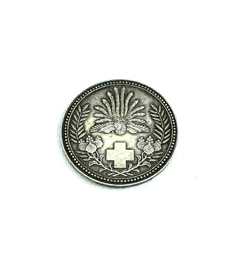 日本赤十字社が、社員の証として、また功績があった方を讃えるために記念として贈られたものです。そう言われれば赤十字の紋章がちゃんと描かれていますよね。