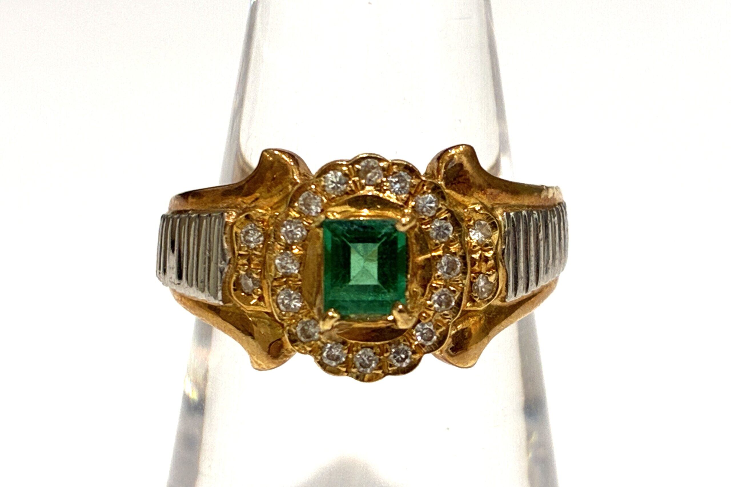 先日K18/Pt900のエメラルド ダイヤモンド付きリング