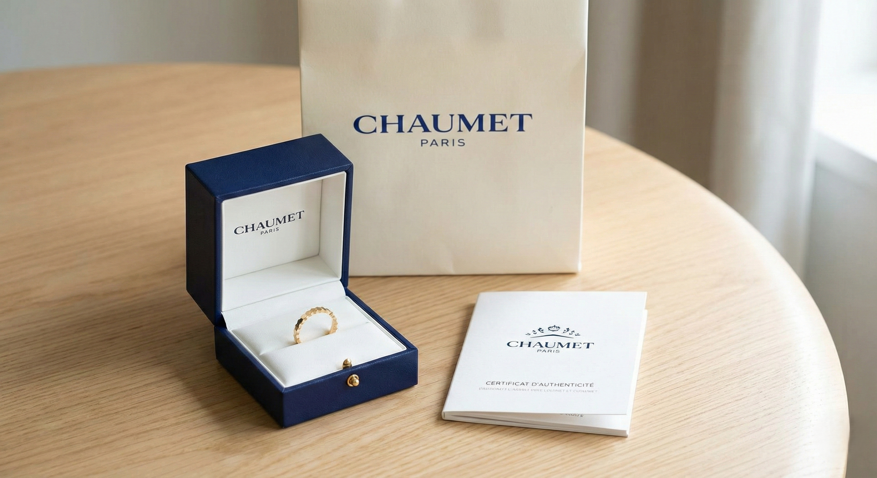 ショーメのようなハイブランドジュエリーにおいて、保証書(ギャランティカード)の有無は査定額に大きく影響します。特にビーマイラブはサイズ直しが難しいデザインのため、真正性とサイズを証明する保証書は重要です。もちろん、本体のみでも買取は可能ですが、探して出てくるようであれば必ず一緒にお持ちください。
