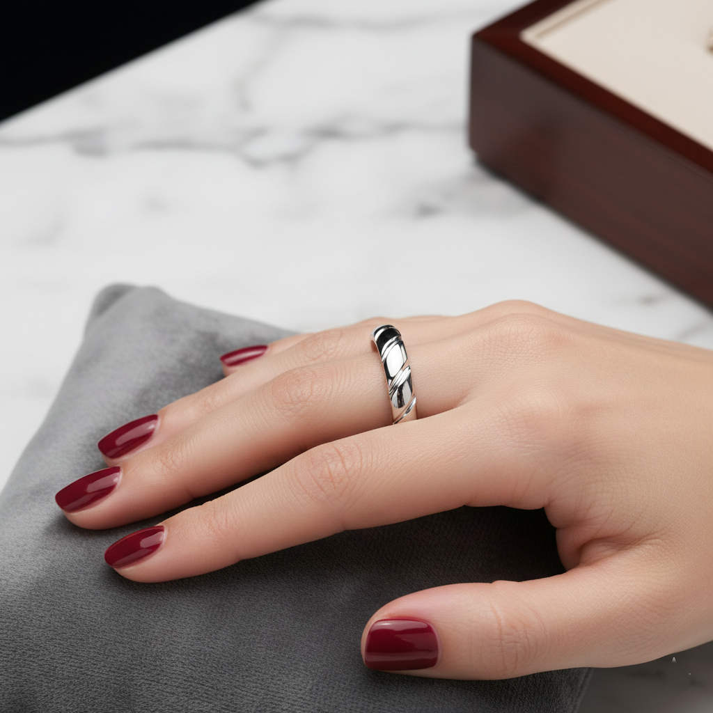 パリのヴァンドーム広場の螺旋柱をイメージした、螺旋模様のリング。