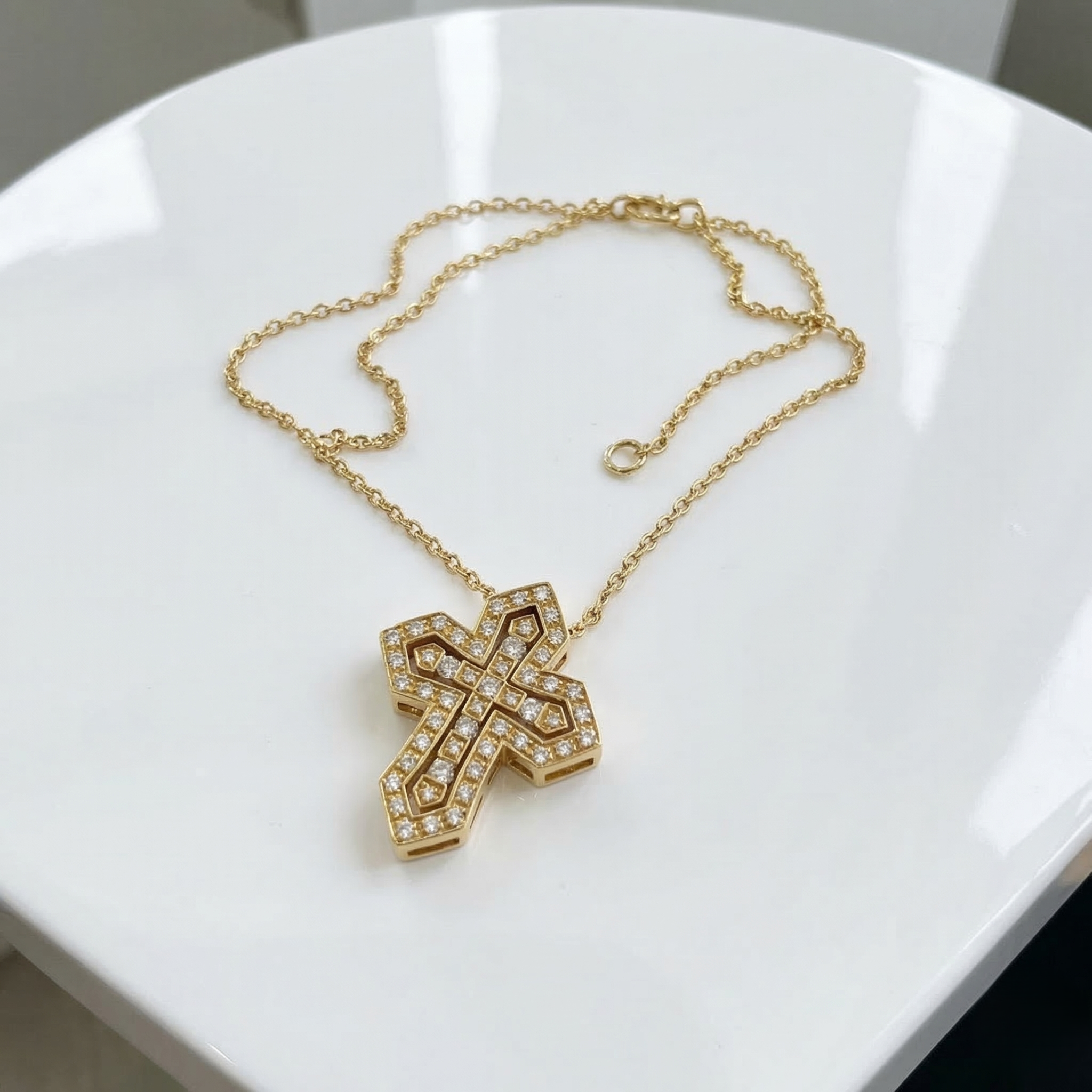 ダイヤモンドの絶妙な配置 格子の交点に埋め込まれた純正ダイヤモンドは、控えめながらも確かな気品を添えます。40代〜60代の洗練された女性に「日常に馴染むハイジュエリー」として圧倒的な支持を得ています。