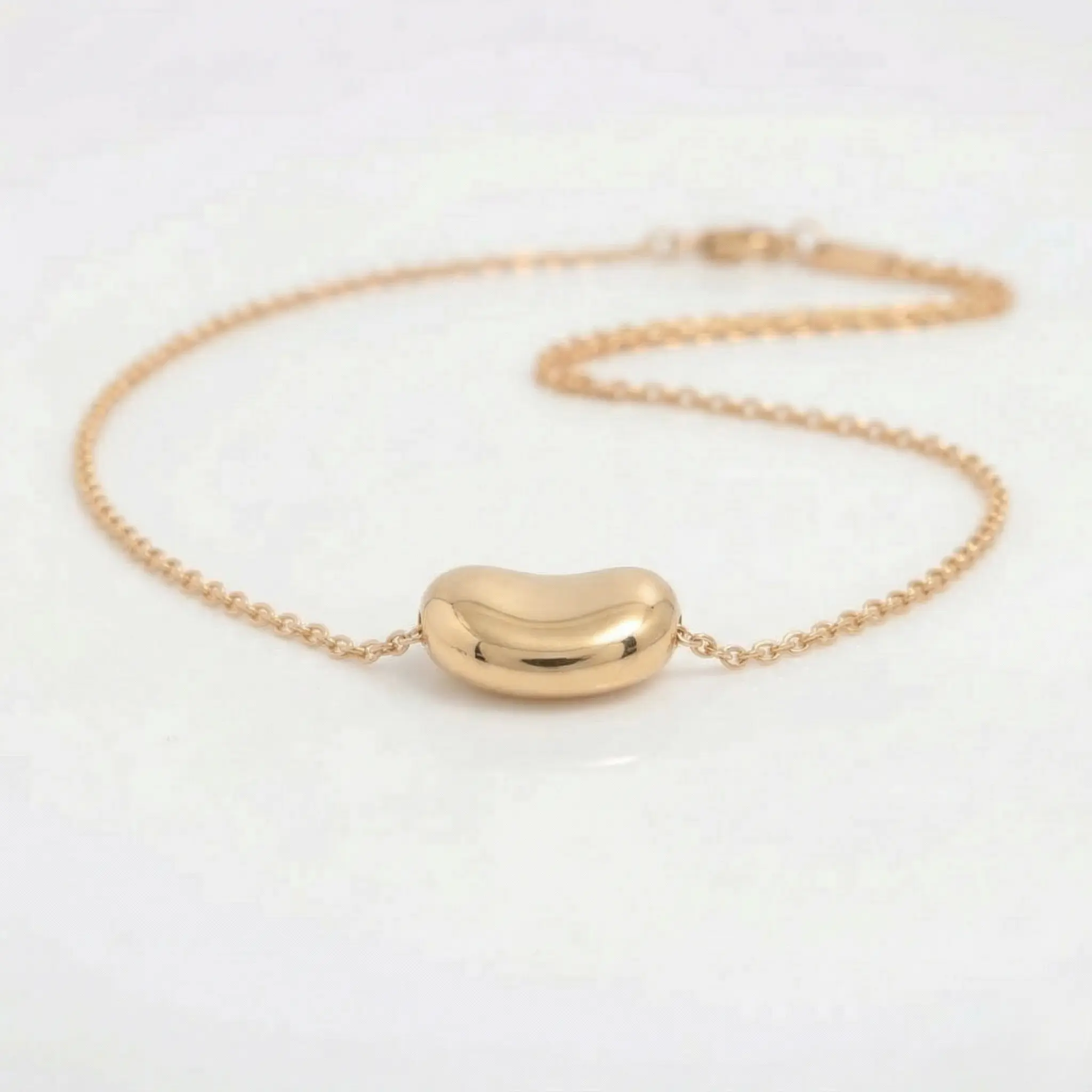 生命の始まりを象徴する「豆」をモチーフにしたデザインです。シンプルながら女性らしい曲線美が特徴で、シルバー素材から18Kゴールド(750YG)まで、時代を超えて高く評価されています。