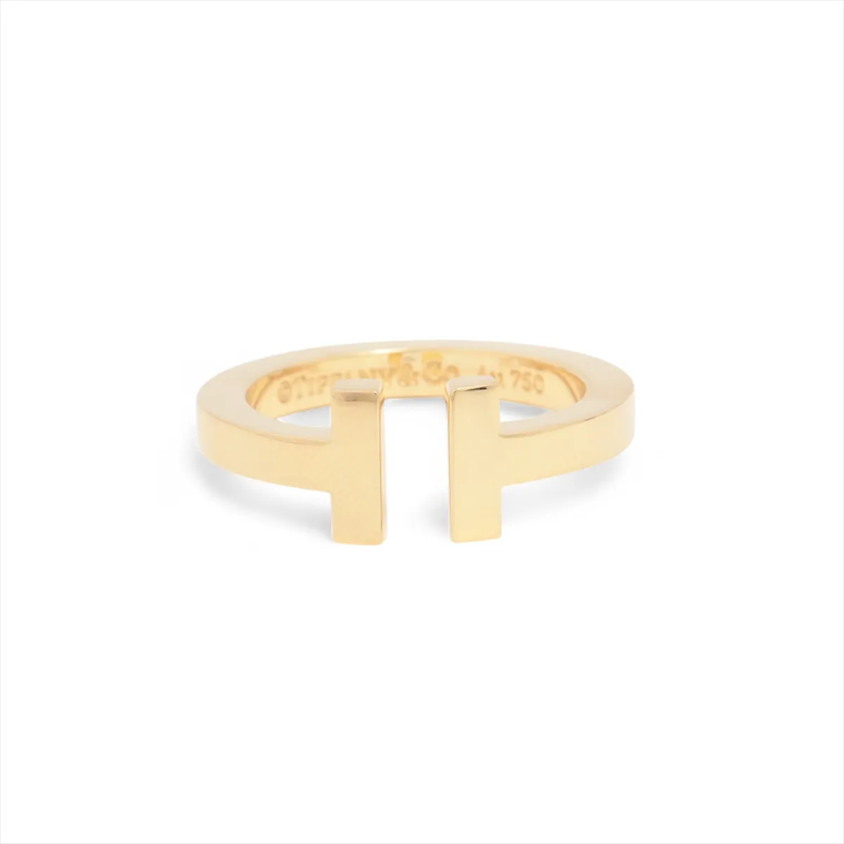 Tスクエア リングは、ティファニーが2014年に発表した「Tコレクション」の一角を成すデザインです。Tコレクションは、1975年のアーカイブ ブレスレットに着想を得て、ブランドの頭文字”T”を幾何学的なラインで表現したシリーズ。ニューヨーク5番街の摩天楼や碁盤目状の街路へのオマージュが込められており、直線的で現代的なフォルムが特徴です。