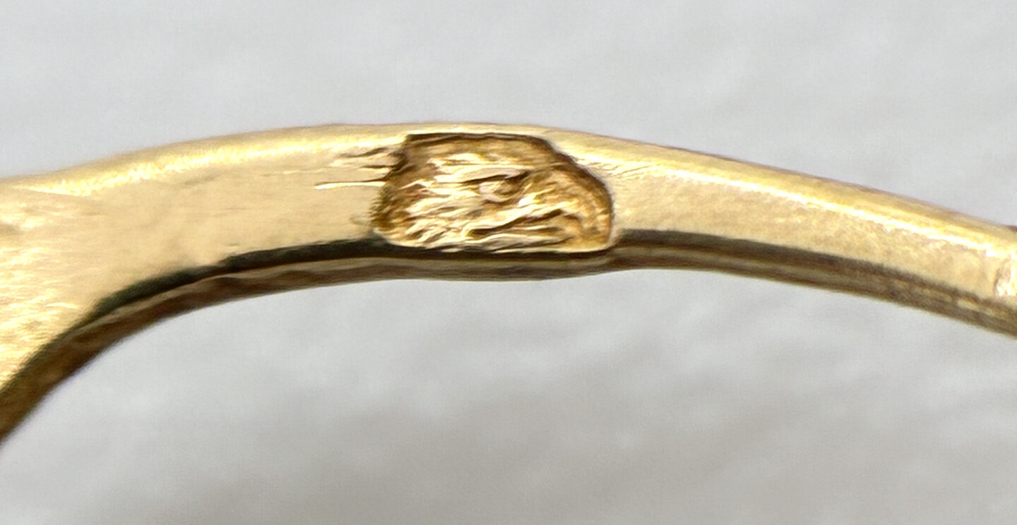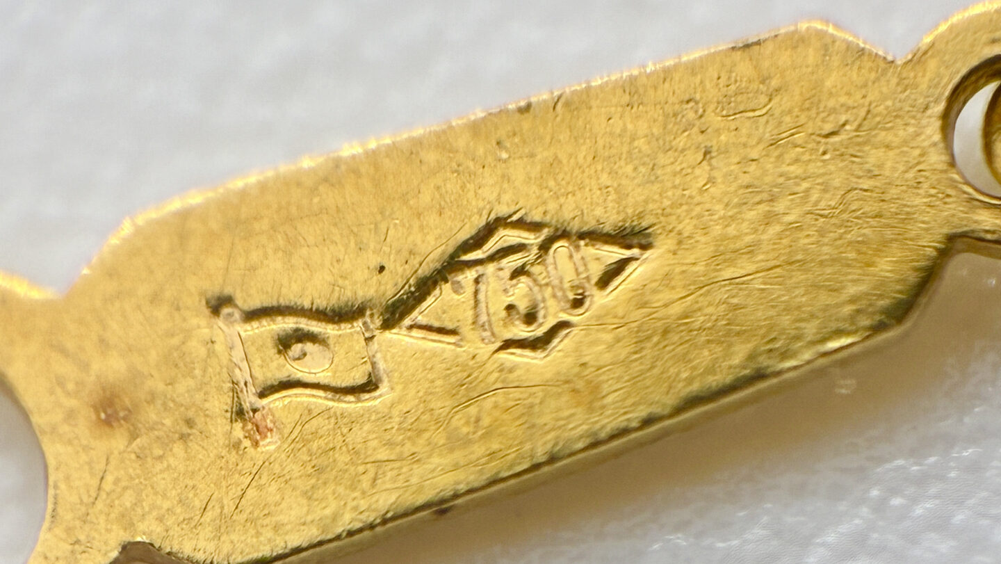 フランスでは、18金(純度75%)以上の金製品にホールマークの打刻が義務付けられています。そのため、純度が18金以下のものは金製品として認められていません。このことから、「鷲」の刻印がある場合は「18金(正確には18金以上)」ということになります。