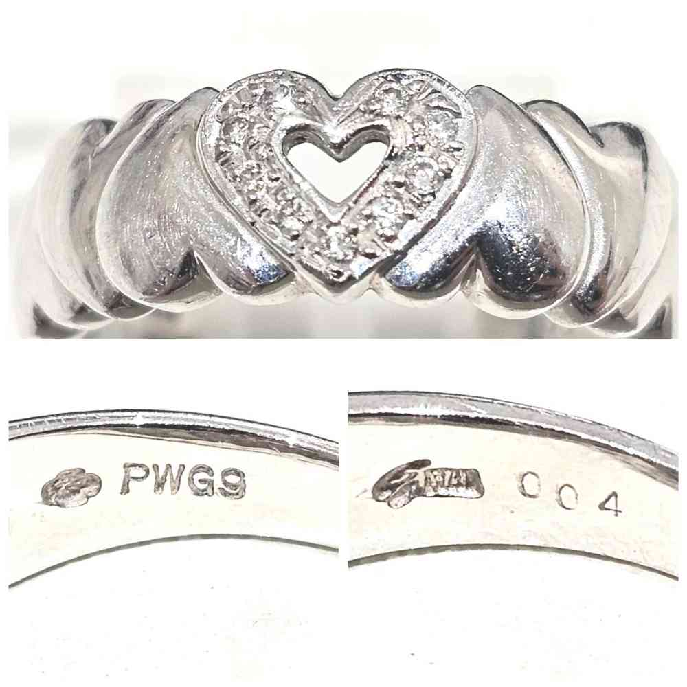 一般的にジュエリーに入っている貴金属の刻印と言えば「K18」や「750」「Pt900」などがほとんどですが、今回買取したリングに入っていた刻印は『PWG9』。