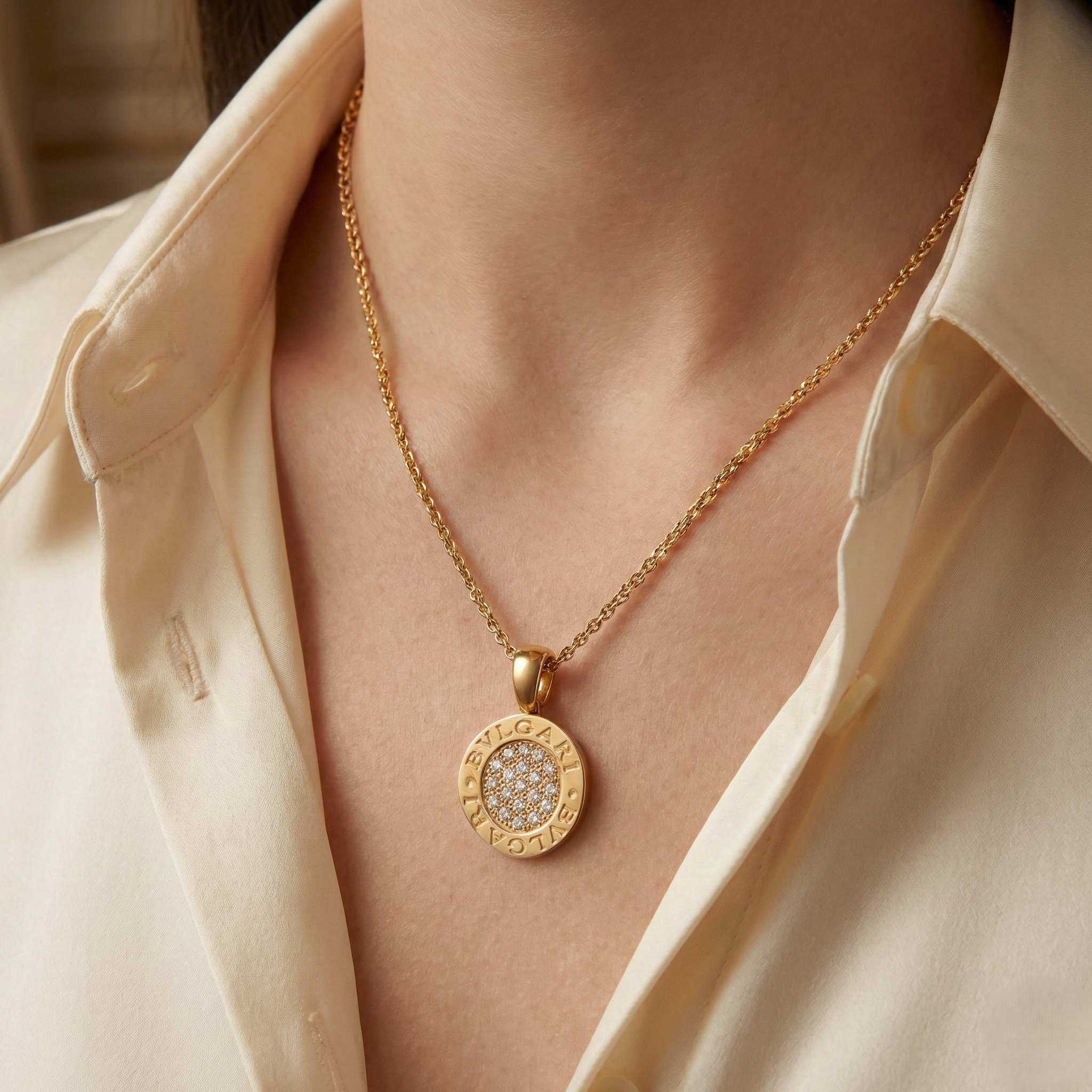 特に、古代ローマのコインからインスピレーションを得たダブルロゴのサークルモチーフに、熟練の職人技でダイヤモンドを敷き詰めた「パヴェセッティング」のネックレスは、その圧倒的な煌めきと存在感で、多くの女性を魅了し続けています。