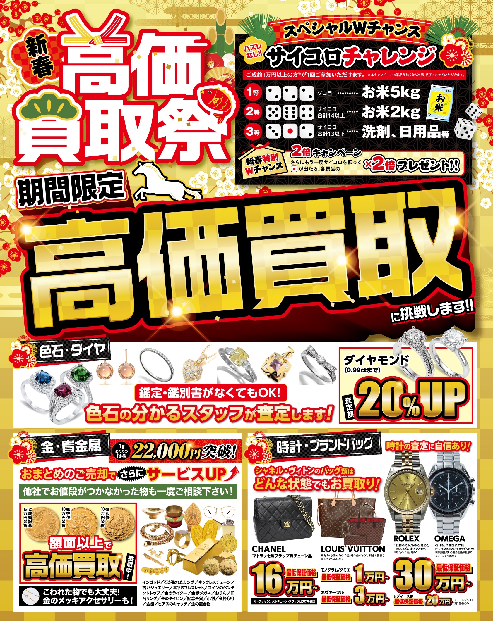 ただいま店頭では10,000円以上の買取で【サイコロチャレンジ】を開催中!