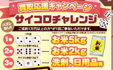 ご好評いただいております【買取応援キャンペーン・サイコロチャレンジ】が、今月も継続開催となりました!