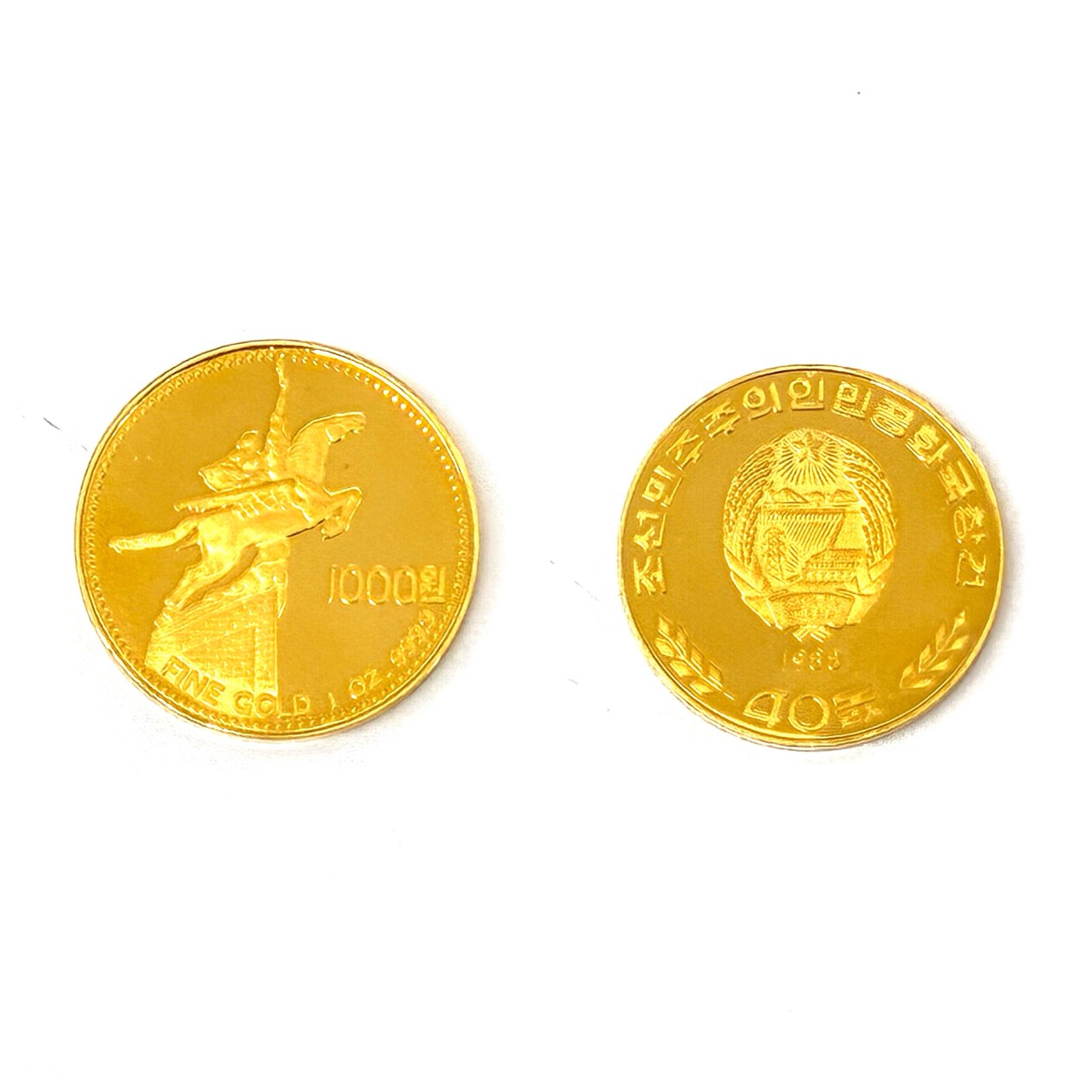 北朝鮮(朝鮮民主主義人民共和国)建国40周年を記念して発行された、重量1オンス(約31.1g)の純金記念コインです。