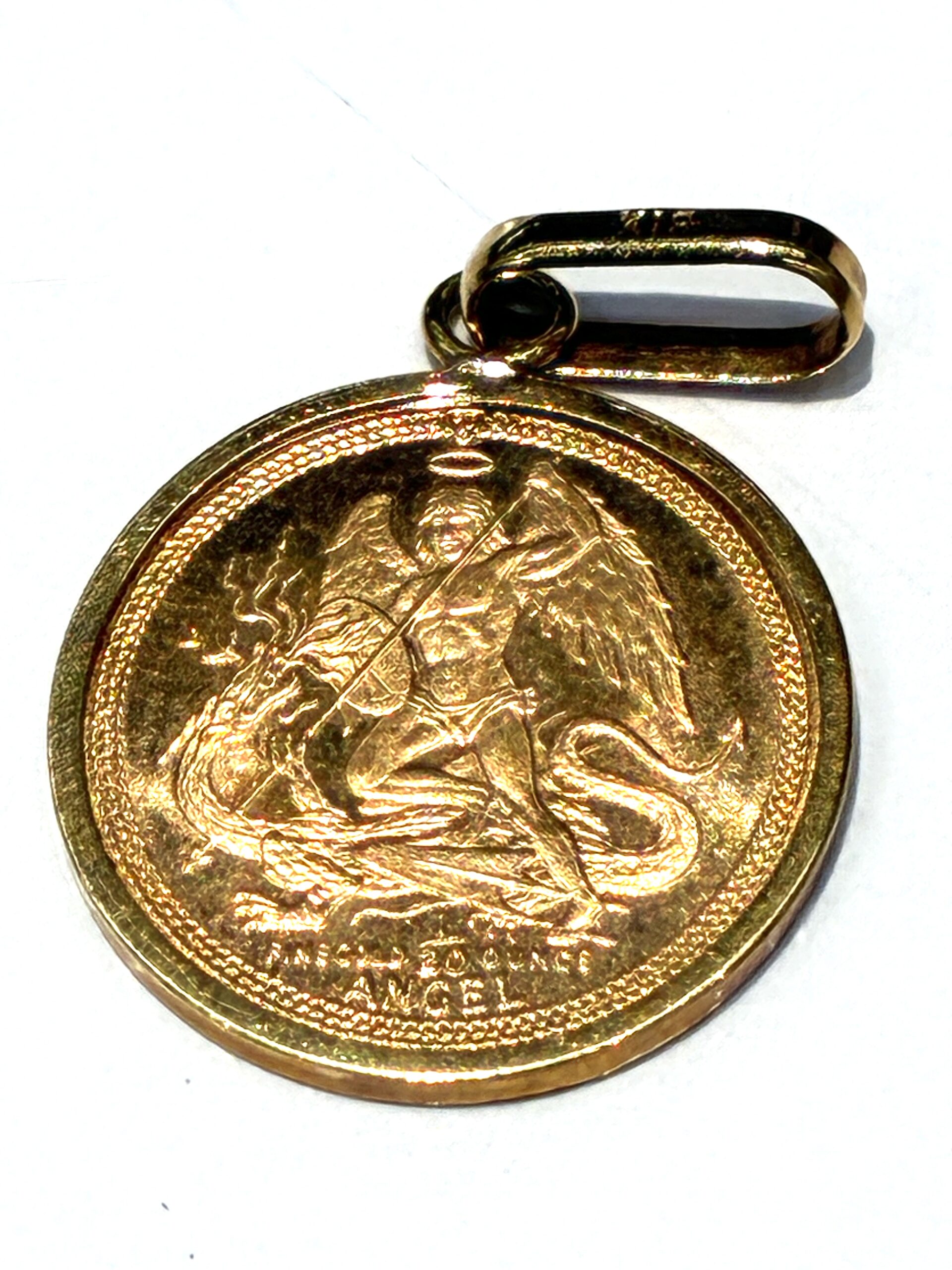 金性 22金 (K22) イギリス領マン島で発行されたエンジェル金貨。この金貨にはキリスト教の聖典に登場する大天使ミカエルが竜を退治する姿がデザインされ、反対側にはエリザベス2世の肖像が描かれています。サイズも様々で今回は1/20オンスです。