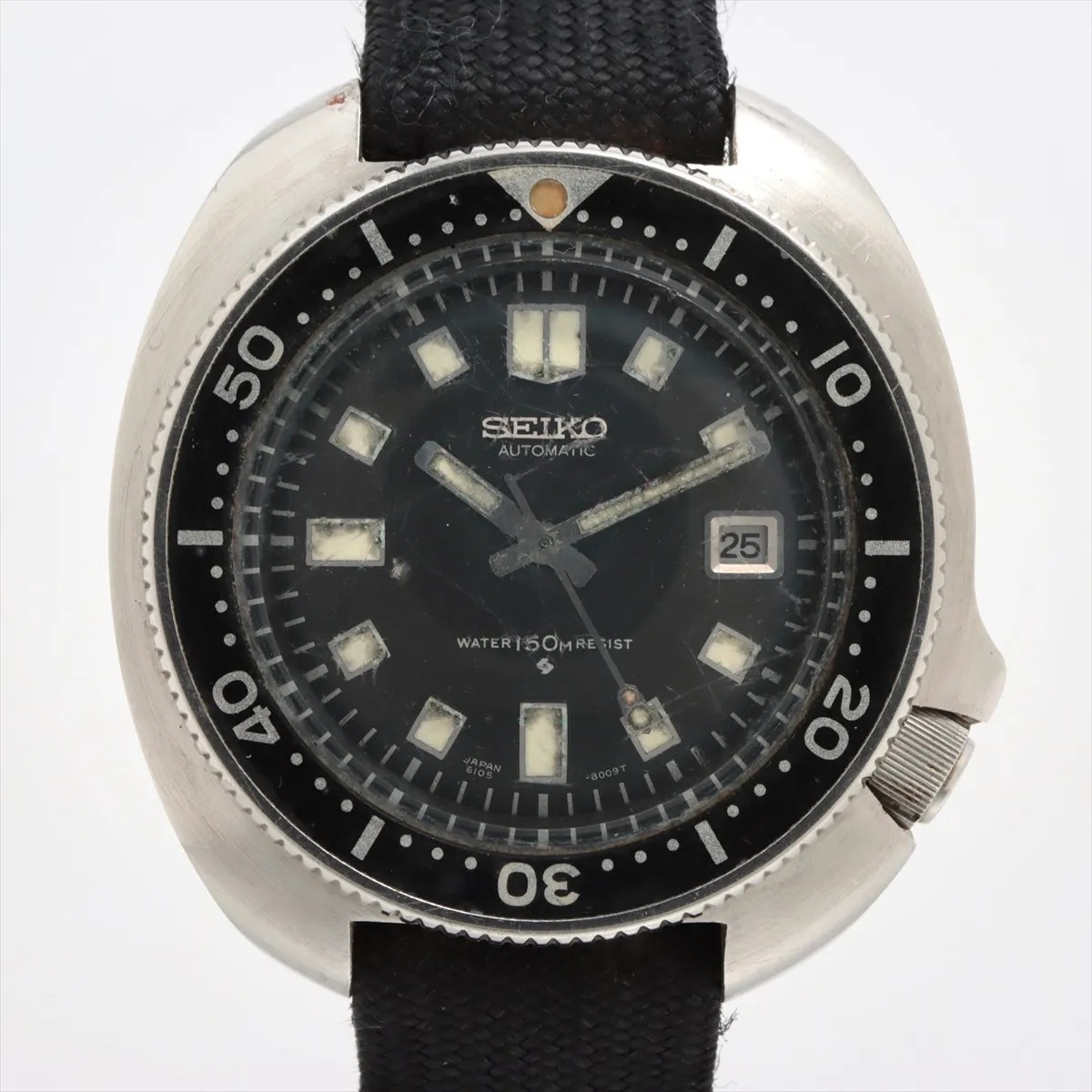 62MAS(Ref.6217)セイコー初の本格ダイバーは、現在のダイバーズウォッチの礎となった記念すべきモデルです。200m防水性能と回転ベゼル、視認性に優れた大型時刻表示など、現代ダイバーズウォッチの基本要素をすべて備えた先駆的存在として、時計史上重要な位置を占めています。