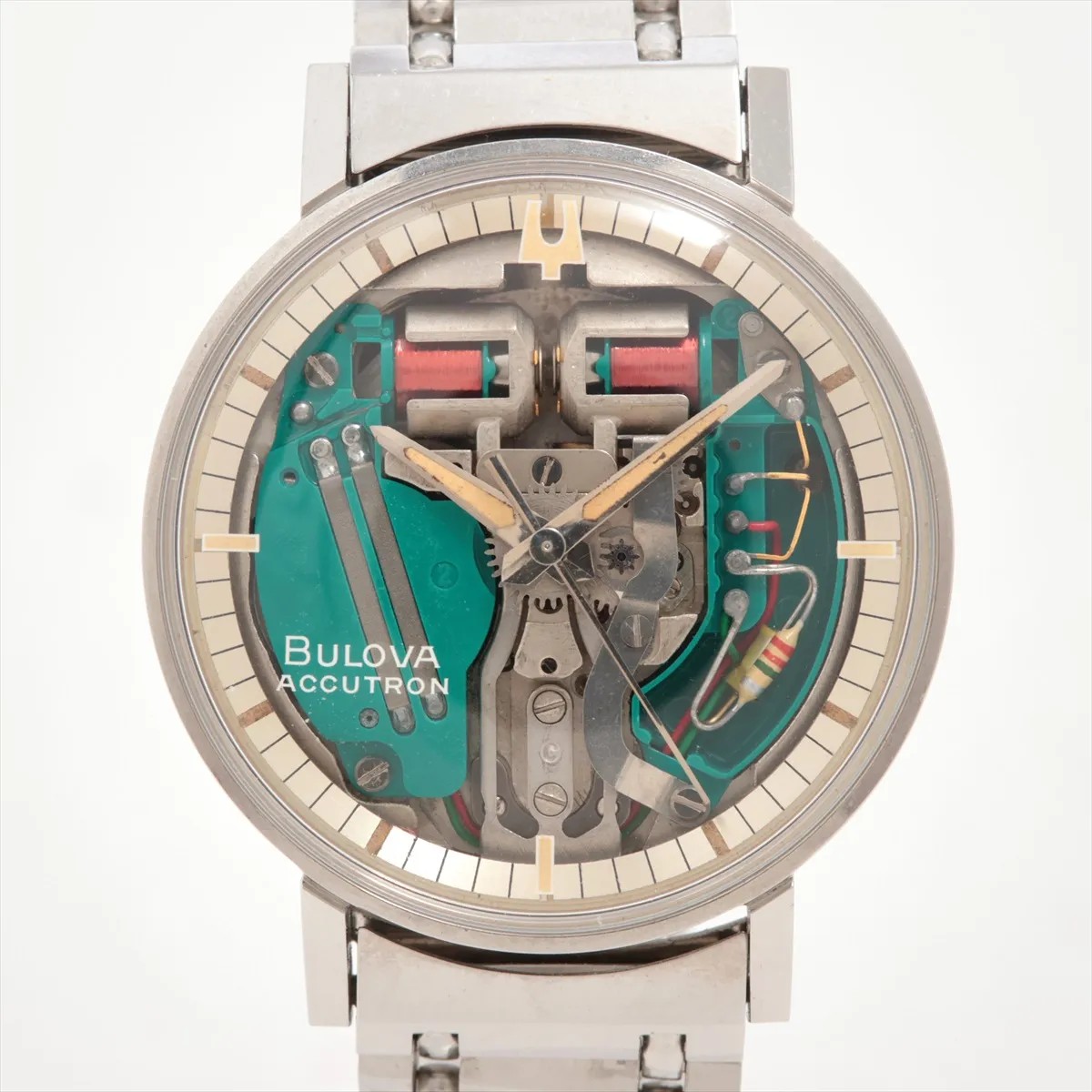 **Bulova Accutron(Spaceview等)**は、世界初の電子時計として1960年に登場した革新的なモデルです。音叉の振動を利用したユニークな機構と、ムーブメントが見えるスケルトンデザインのSpaceviewモデルは、時計技術史における画期的な発明として現在も高く評価されています。