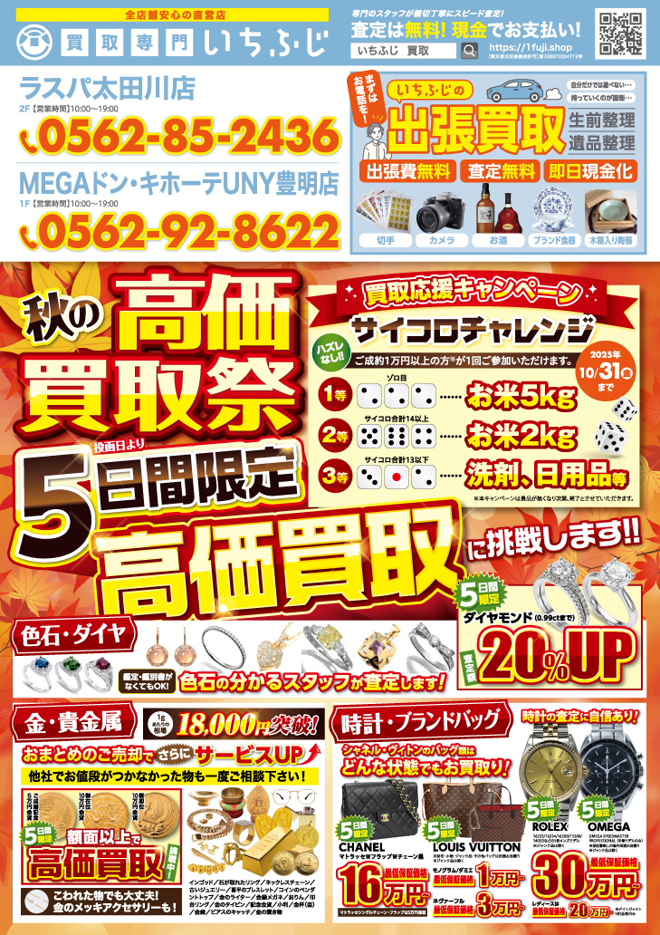 期間中、買取金額10,000円以上でご成約のお客様は、サイコロチャレンジにご参加いただけます♪