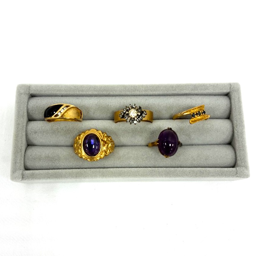 買取商品名:K18 黒色石付きリング、K18透明石付きリング、K18青色石付きリング、K18紫色石付きリング、K18紫色石オーバルリング