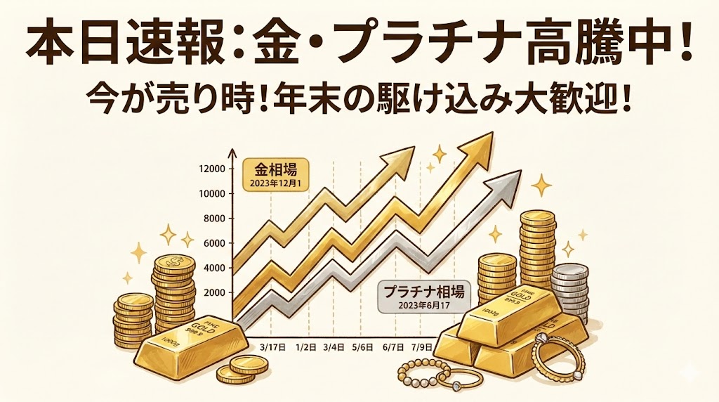 本日速報:金・プラチナ高騰中!今が売り時!年末の駆け込み大歓迎!