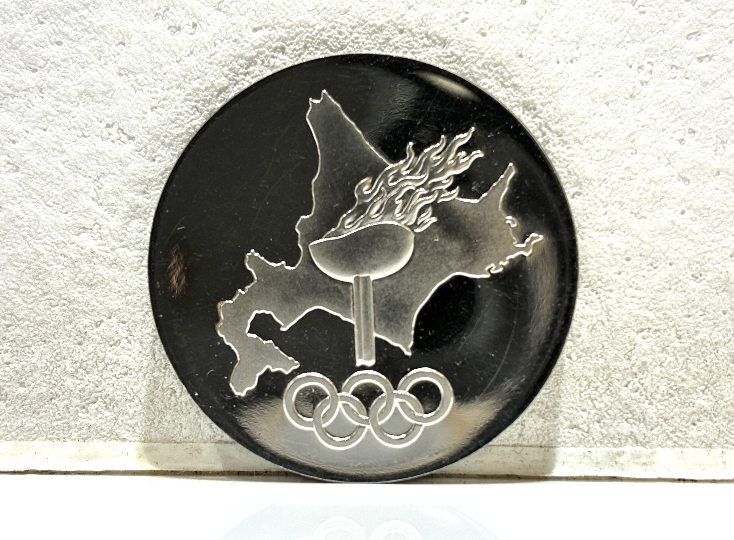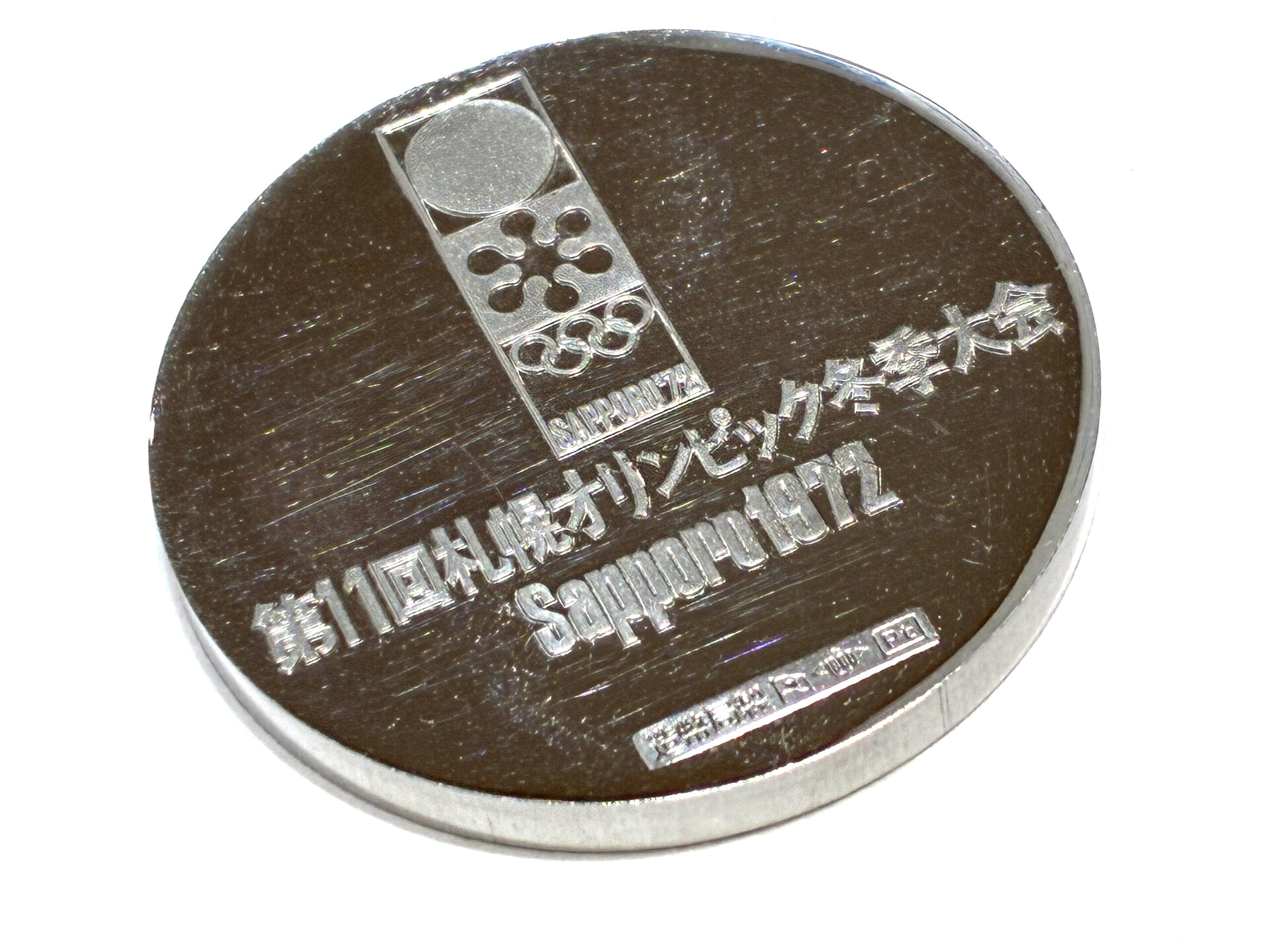 表面には大会エンブレムと「第11回札幌オリンピック冬季大会 Sapporo 1972」の文字がしっかりと刻まれ、裏面には北海道のシルエットと聖火、五輪マークが美しくデザインされています。