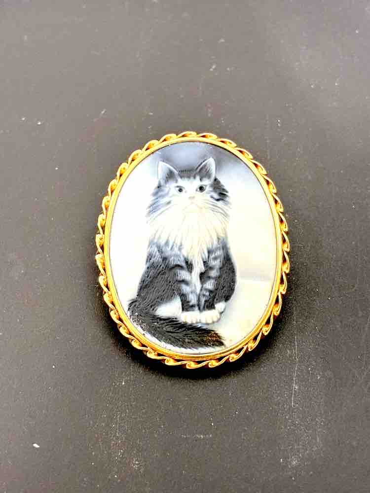 こちらのブローチはハンドメイドで作り枠がK18のブローチになります。