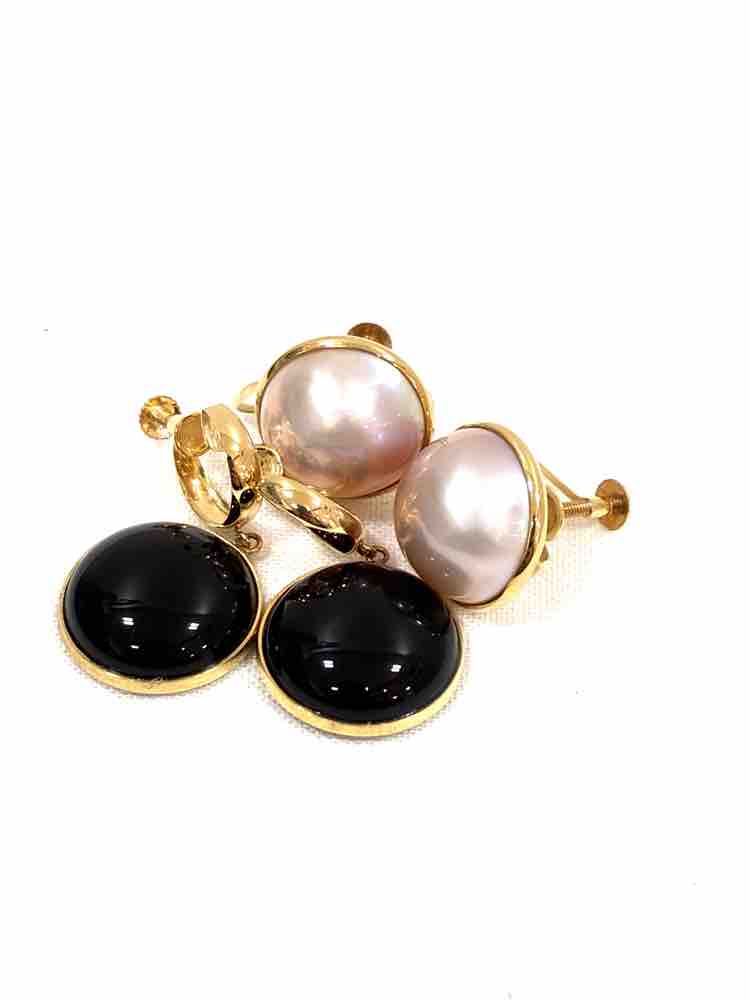 パールとオニキスが付いた素敵なイヤリング♪