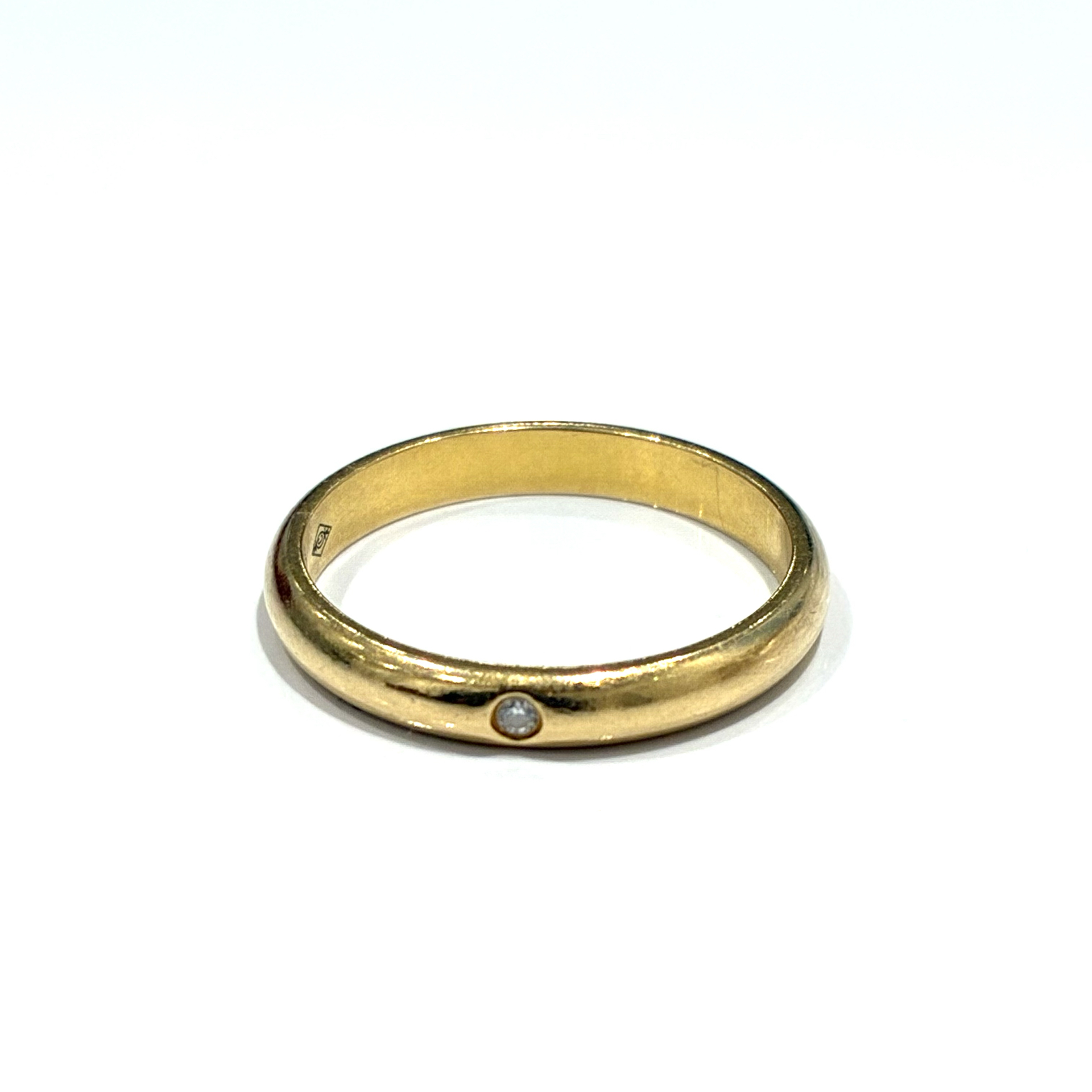 今回お持ち込みいただいたのは、シンプルで上品なデザインのゴールドリング。滑らかなフォルムにワンポイントでダイヤモンドがあしらわれており、さりげない高級感が魅力的なお品です。