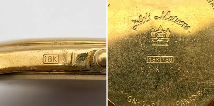 裏蓋に「18K」「750」という刻印があるのが特徴です。