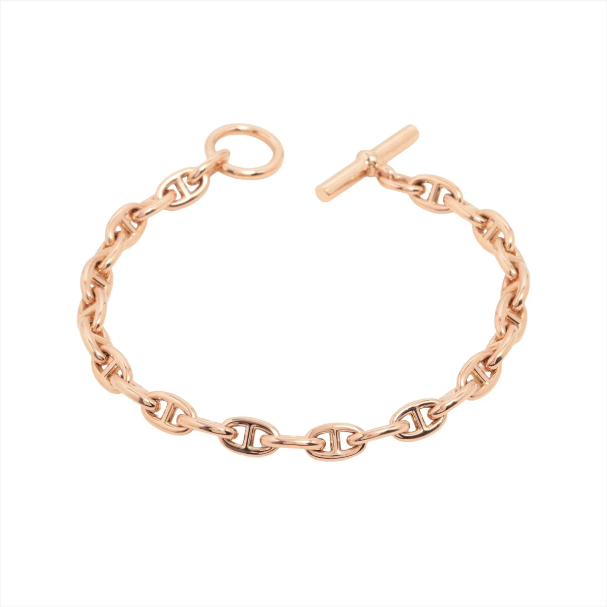 でも実は、エルメスは同じ「錨の鎖」デザインで、18金(750刻印)のゴールドモデルも作っているんです。しかもローズゴールド(PG)、イエローゴールド(YG)など、色味のバリエーションもあります。