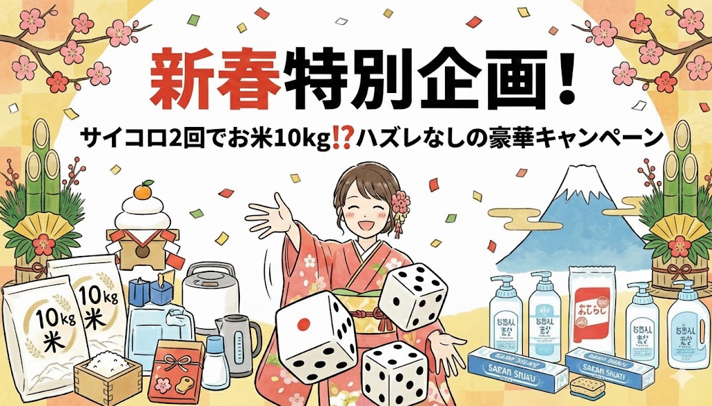 🎉新春特別企画!サイコロ2回でお米10kg⁉ハズレなしの豪華キャンペーン【新城市・北設楽郡・三ケ日のお買取りはいちふじピアゴ新城店へ】