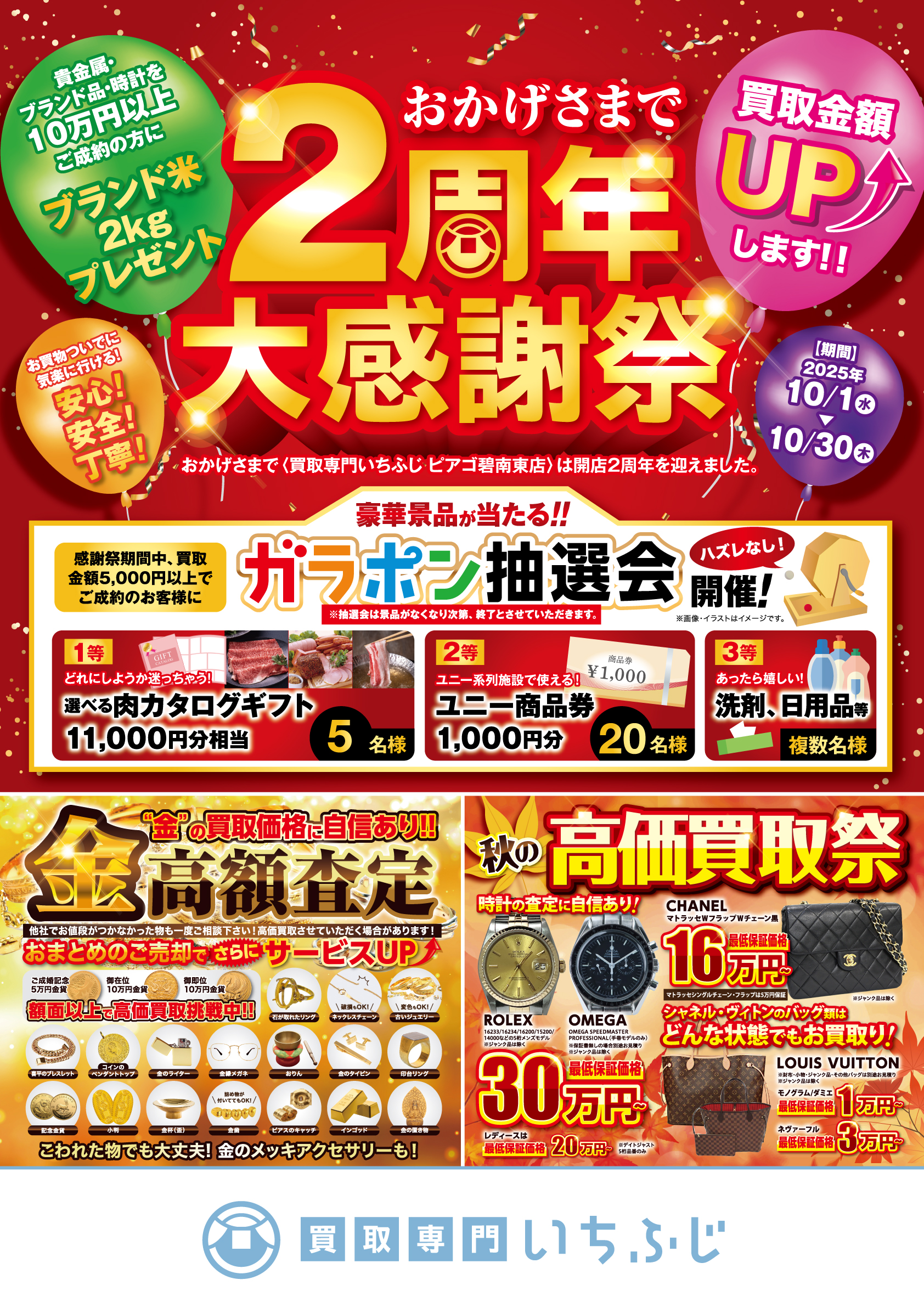 買取専門いちふじピアゴ碧南東店はおかげさまでオープンから2周年が経過いたしました!