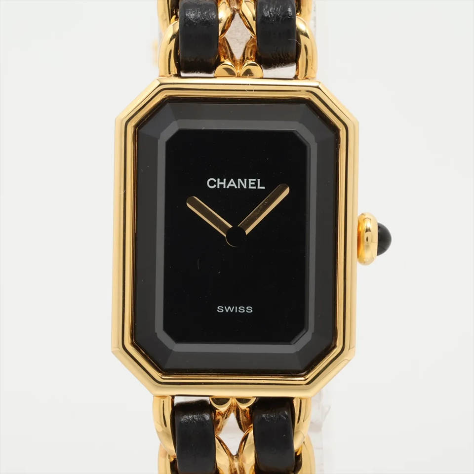 CHANEL シャネル プルミエールS GP×革 QZ 黒文字盤