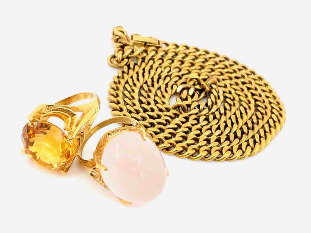 重厚感のあるK18喜平ネックレスに、華やかなカラーストーン付きK18リング💍