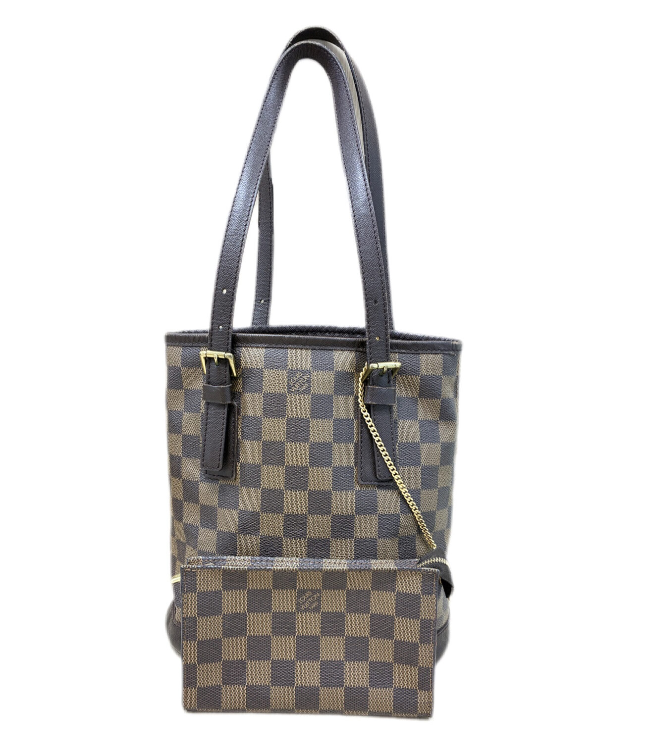 市松模様が特徴的なヴィトンの定番ライン「ダミエ」から取外し可能なポーチが付いたバケツ型のトートバッグ👜✨