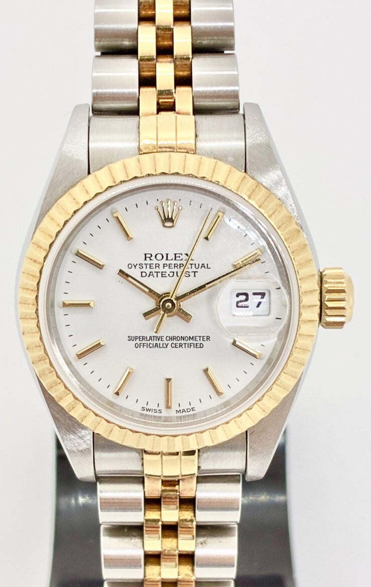 ロレックスの人気定番モデルである『デイトジャスト』のレディスモデルになります。素材にはステンレスと18金イエローゴールドが使用されており、様々なファッションとの相性も良く、流行に左右されず末永く愛用できる高級感あるデザインが魅力です。