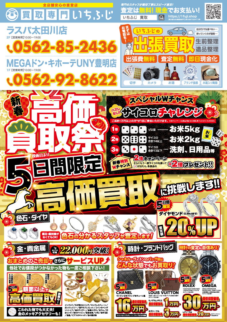期間中、買取金額10,000円以上でご成約のお客様は、サイコロチャレンジにご参加いただけます♪